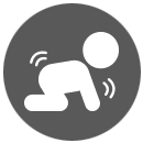 Sits independently; may crawl, scoot or pull up on furniture to stand.